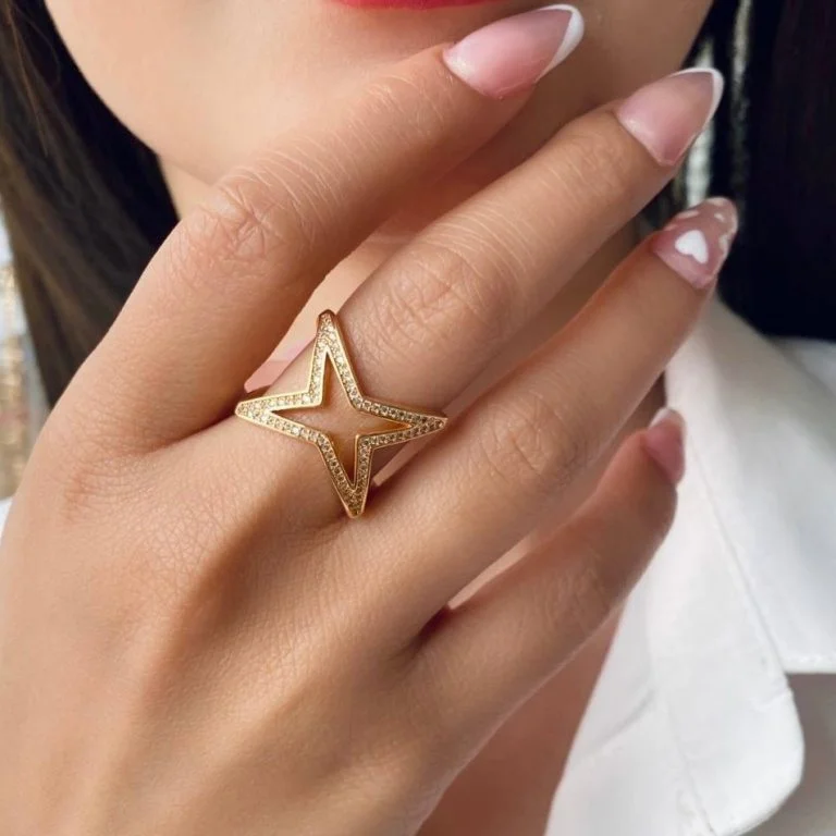 انگشتر زنانه مدل چند وجهی روکش طلا برندysx فری سایز
