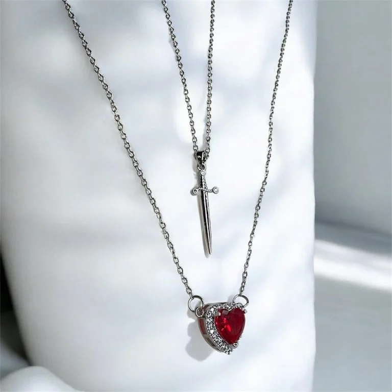 گردنبند ست قلب و شمشیر استیل2